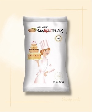 A smartflex velvet fondanttal könnyen, gyönyörű és káprázatos tortákat készíthetsz! Mandulás ízének köszönhetően nagyon ízletes, hasonlít a valódi marcipán ízére. A fondant könnyen nyújtható, nem repedezik,rugalmas, kiválóan alkalmazkodik burkolásra és díszek készítésére. Gélfestékkel könnyen színezhető. Glutén és laktózmentes, természetes anyagokat tartalmaz. Egy nagyobb tortát vagy 2 db kisebb tortát is tudsz burkolni egy 1 kg-os masszából.